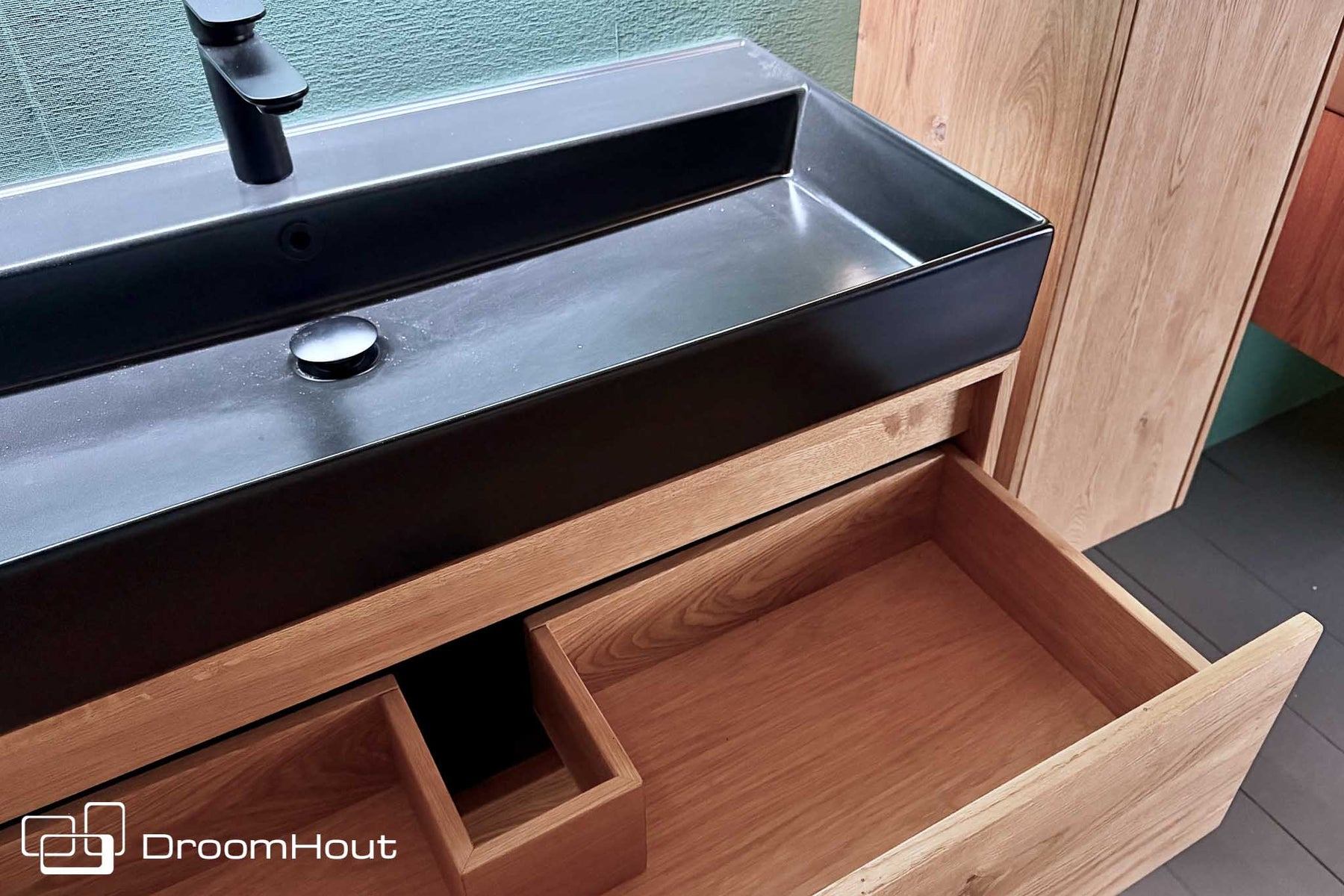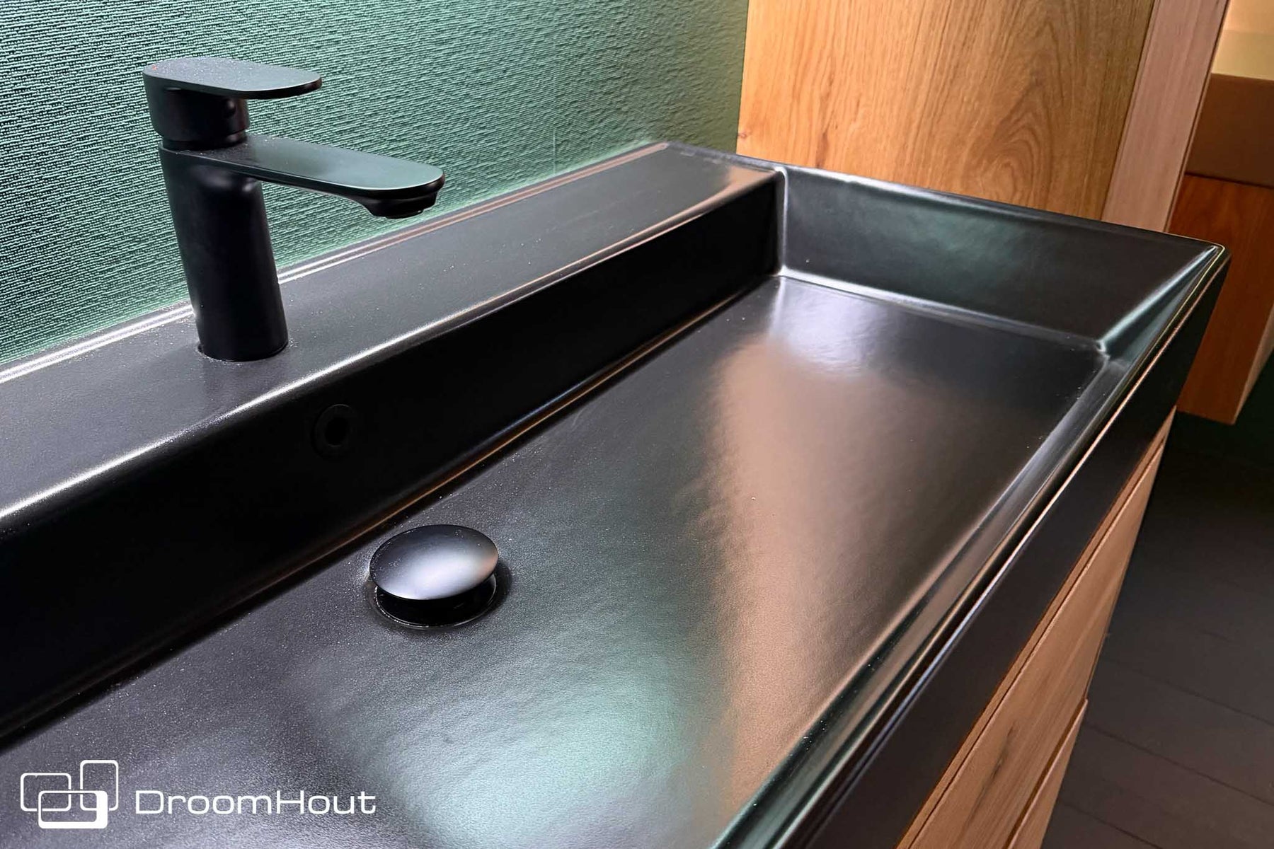 – wastafel: zwarte zijdemat keramische bak